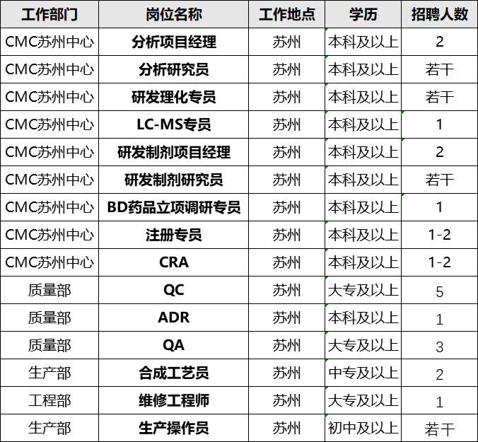 招聘信息 詳情請(qǐng)咨詢:程小姐 0512-68156950 chengting@szerye.com